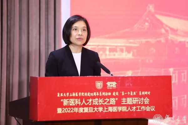 毛丽娟在讲话中指出,新医科的新特点新变化,呼唤着培养更多跨学科复合型卓越医学人才的紧迫性。新医科要立足“两个大局”,胸怀“国之大者”,着力在党和国家事业发展蓝图中找准定位、明确方向、谋划布局、开拓创新,源源不断培养符合全面建设社会主义现代化国家需要的专业人才。要高度重视新医科人才队伍的建设,全面提升新医科人才培养的质量,加大新医科人才培育引进力度,优化新医科人才成长发展条件。市教卫工作党委、市教委将一如既往地继续大力支持包括复旦上医在内的全市新医科创新发展和人才培养工作,统筹做好政策支持、服务保障等工作,与各方深化合作对接,共同推动新医科发展不断取得新成效,为上海人民城市建设和卫生健康事业发展贡献力量。