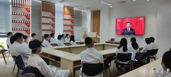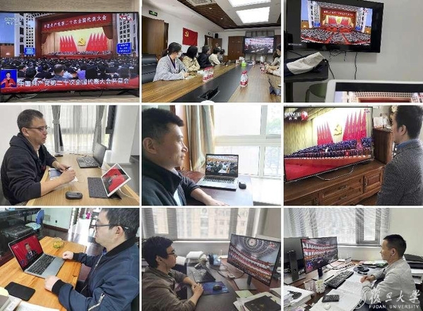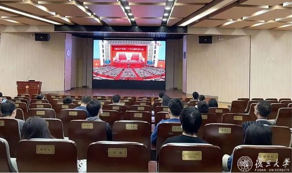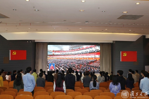 在枫林校区,复旦大学上海医学院组织师生医务人员以线上线下相结合的方式收听收看大会开幕会直播盛况。医学院党政领导、机关党员和各院系师生代表在明道楼二楼报告厅,认真聆听、学习报告。各附属医院党委也安排了多个收看点,组织党员、干部收看学习。