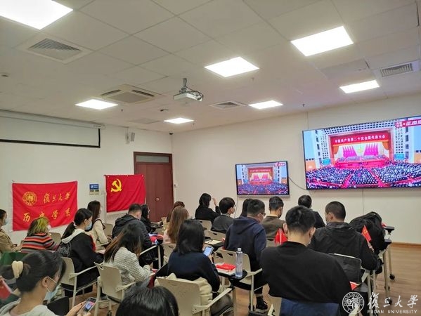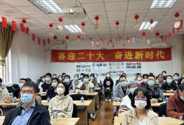 上午9点半,距离党的二十大开幕还有半个小时,本部光华楼东辅楼202报告厅,已经来了不少师生和党员代表。在校的党政领导,党委委员、纪委委员,各机关部处同志及师生党员代表早早落座,共同收看大会盛况。