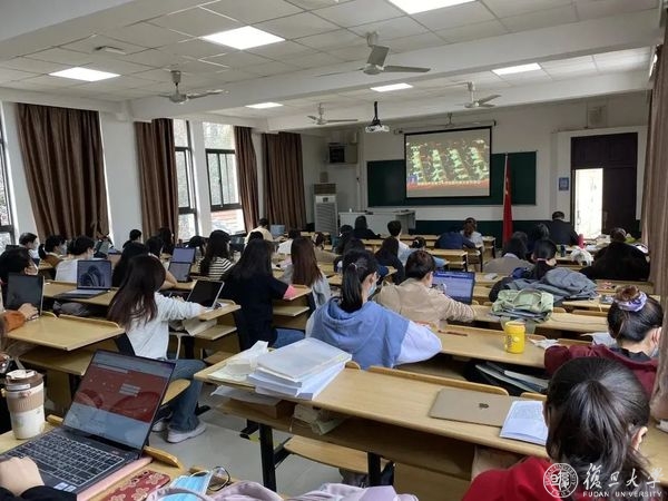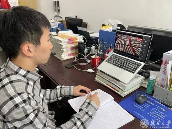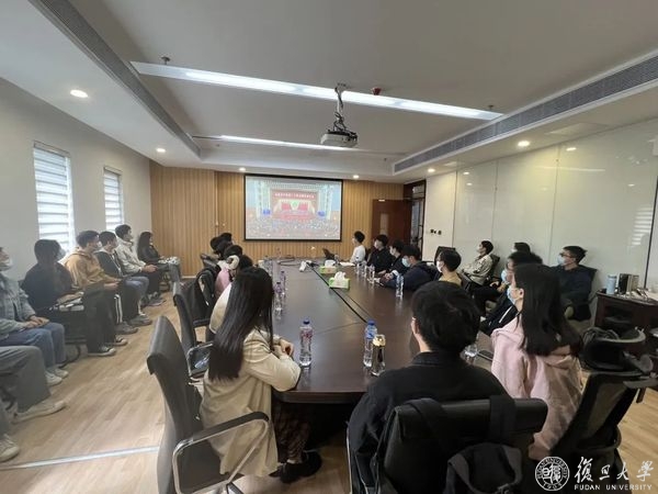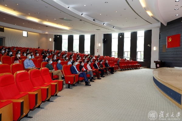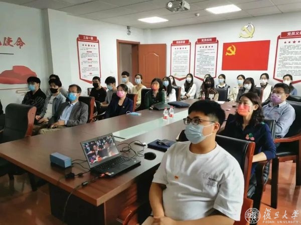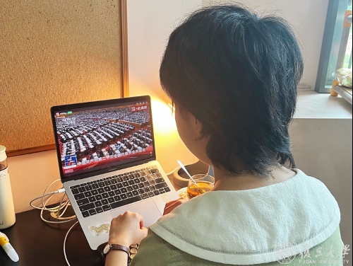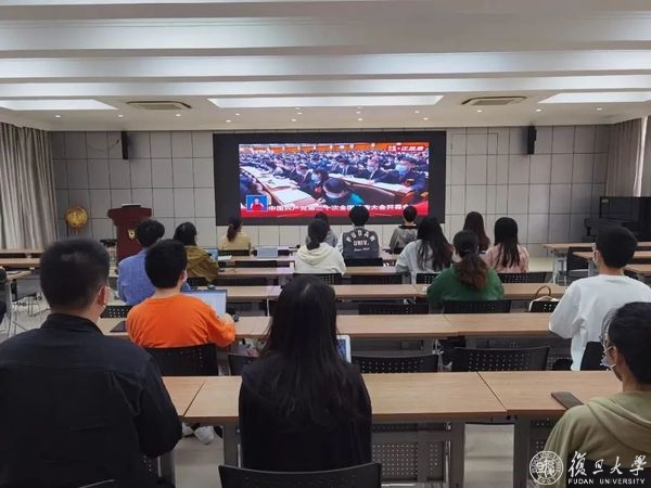 在张江校区,食堂三楼330会议室,药学院、微电子学院、人类表型组、类脑研究院、复杂体系多尺度研究院等院系、科研单位部分师生及行政人员共同观看开幕会盛况,大家聚精会神听报告、全神贯注做笔记,不时热烈鼓掌。