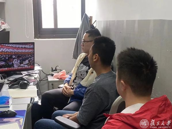 奋进新时代,争做追梦人。身着“星火”队服,在《共产党宣言》展示馆,“星火”党员志愿服务队(下文简称:“星火”队)师生队员、指导老师正在认真观看二十大开幕,听到精彩之处,队员们纷纷鼓掌。“激动、振奋,听了总书记的报告,我想作为马克思主义学院党的建设专业的博士研究生,深入学习研究阐释‘自我革命’这一重大理论,将是我接下来专业学习的重点。努力学习好、宣讲好、贯彻好党的二十大精神,让党的创新理论和真理故事飞入寻常百姓家,则是我作为‘星火’队员肩头沉甸甸的责任。”复旦大学马克思主义学院博士研究生,“星火”党员志愿服务队队长杨宁说。