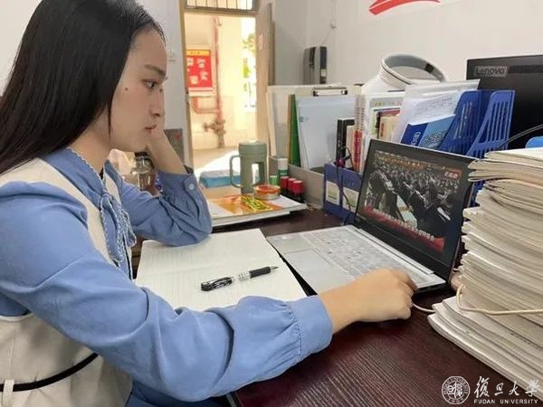 在8号楼多媒体党建教室,马克思主义学院学生一边看,一边记录。“作为预备党员,我要以实际行动融入到新时代的奋斗征程之中,我也报名了学院的二十大精神宣讲团,希望能在行动中贯彻好二十大精神。”马克思主义学院2020级望道班的陈婉金说。