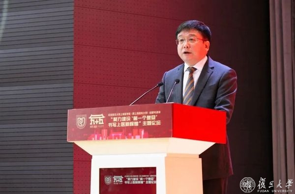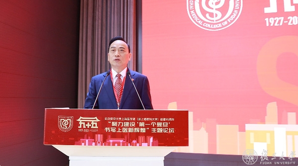 “九十五载筚路蓝缕,初心如磐。九十五载赓续荣光,再展宏图。九十五载全新出发,奋进当时。”焦扬代表复旦大学向线上线下的与会嘉宾表示欢迎,向长期以来关心支持复旦上医改革发展的各级领导和各界人士表达感谢,向为上海医科大学和复旦大学医学事业发展作出巨大贡献的前辈致敬,向复旦上医全体师生和医务人员送上问候。