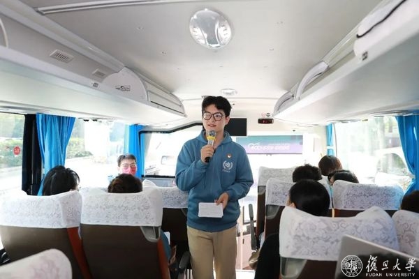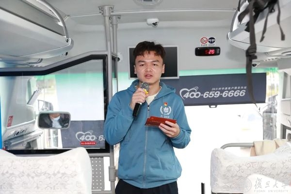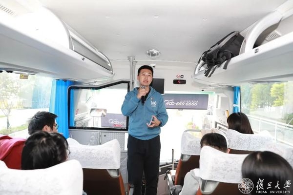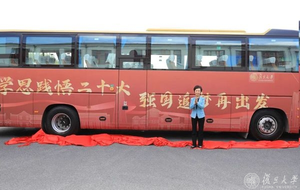 10月29日上午,校党委书记焦扬为复旦大学博士生讲师团(下文简称:博讲团)联合“星火”党员志愿服务队(下文简称:“星火”队)、青年马克思主义研究会共同发起的复旦大学红色巴士研学实践“党的二十大精神学习专线”揭幕。
