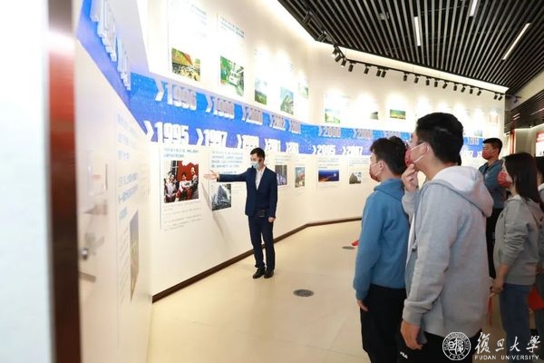 2020年,习近平总书记给复旦大学“星火”党员志愿服务队回信,勉励大家“心有所信,方能行远”。在“星火”队员廉伟琪同学的讲解下,同学们认真聆听,仔细观看。展示馆一楼展览以“宣言中译·信仰之源”为主题,展示《共产党宣言》的诞生、中译和影响。