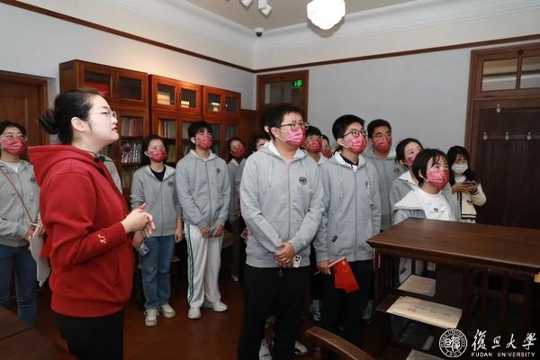 拾级而上,同学们在二楼、三楼参观陈望道的生平事迹展以及专题展厅,听廉伟琪讲述老照片、手稿书信背后的故事。“我们复旦的校庆日是5月27日,这是陈望道老校长定下的,因为5月27日是上海解放的日子,也是复旦的新生。”在参观的最后,廉伟琪与大家共勉:“我们一定要弘扬伟大建党精神,传承宣言精神,为实现中华民族伟大复兴的中国梦贡献青春力量”。