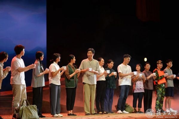 演出接近尾声,伴随着“复旦复旦旦复旦,巍巍学府文章焕”的校歌合唱,所有参演人员上台鞠躬谢幕,台下观众也合拍应和。公演结束,相辉堂内响起了热烈而经久的掌声,演职人员同在场领导老师一同合影留念。