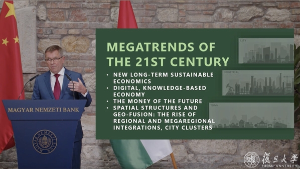新开发银行副行长周强武,匈牙利中央银行行长杰尔吉•马托奇(György H Matolcsy),中联部当代世界研究中心主任岳阳花,国际经济交流中心副理事长韩永文,美国耶鲁大学中国中心高级研究员(Susan Thornton),上海财经大学校长刘元春,巴基斯坦伊斯兰堡战略研究所所长、巴基斯坦外交部前秘书长艾扎兹·乔杜里(Amb. Aizaz Ahmad Chaudhry),金光集团APP(中国)副总裁翟京丽先后发表主旨演讲。复旦大学一带一路及全球治理研究院常务副院长黄仁伟主持。