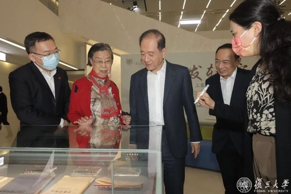 随后,韩启德一行来到复旦大学图书馆医科馆(康泉图书馆),依次参观了馆藏书画作品展、上医自编老教材教具展、钱惪教授捐赠纪念展、华山医院运动医学发展成果展等上医文化典藏“打卡地”,并专程来到设有“上医九三人”片区的上医人文库。韩启德认真聆听颜福庆、谷镜汧等“上医九三”先贤事迹,观看了镇馆之宝——复旦上医创始人颜福庆先生使用的打字机、毕业论文原文等馆藏文物。