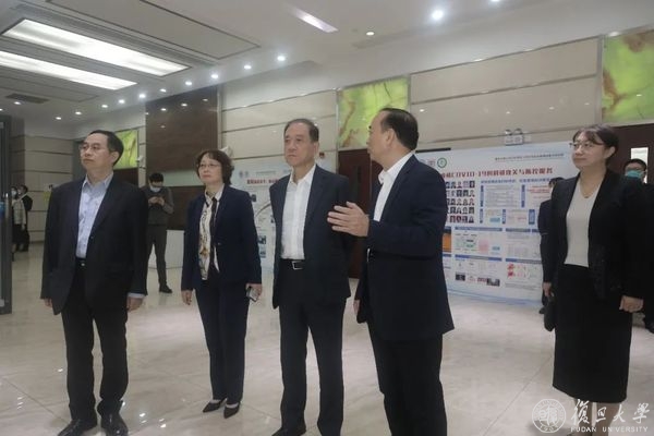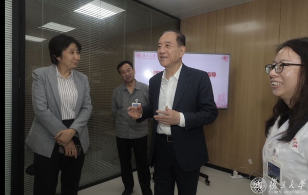 接着,韩启德一行至复星楼,看望闻玉梅院士,参观医学分子病毒学教育部/卫健委重点实验室,复旦大学基础医学院院长雷群英等介绍了实验室基本情况,展示实验室近期重大科研成果。