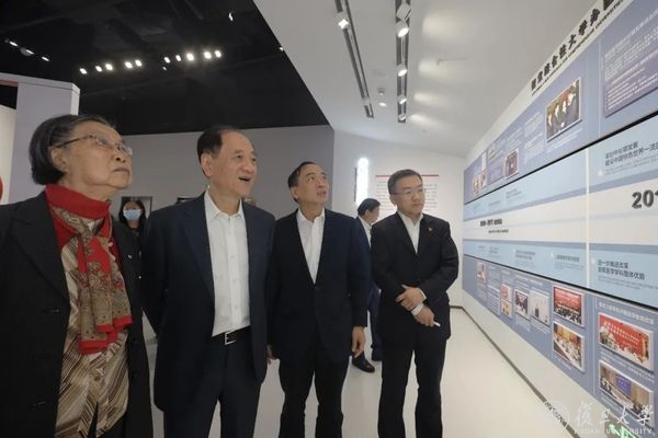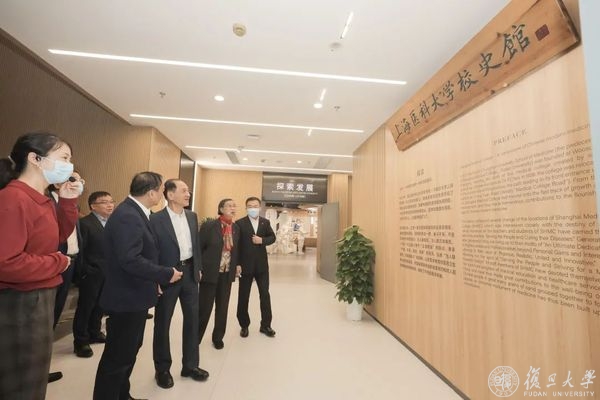 韩启德首先来到西六号楼上医文化中心,参观复旦大学上海医学院院史馆。在讲解员的带领下,韩启德一行依次参观了“始创奠基”“探索发展”“改革振兴”“奋进一流”“携手向前进展”五个展厅以及“医学丰碑”“中国共产党人的精神谱系——上医人的身影”两个专题连廊。一段段院史故事、一件件医学器材、一张张档案照片,都在诉说着上医人95年来坚持“为人群服务、为强国奋斗”的使命担当。韩启德不时驻足,仔细观察着展品,重温峥嵘岁月里那一份份感动。