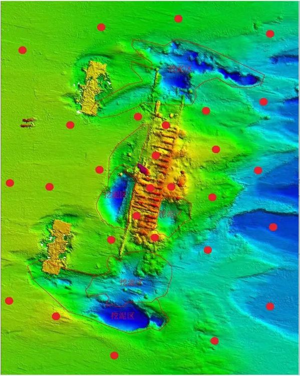 沉船四周环境沉积物采样位点(红色圆点)