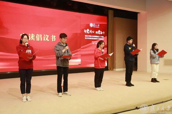 会上,复旦大学博士生讲师团、同济大学时代声音传播社、华东师范大学新时代宣讲团、上海对外经贸大学“初心讲堂”学生理论宣讲团、上海理工大学习近平新时代中国特色社会主义思想研习社宣讲团的代表共同宣读倡议书,用青年之声发出时代强音,用青年之声凝聚磅礴之力。