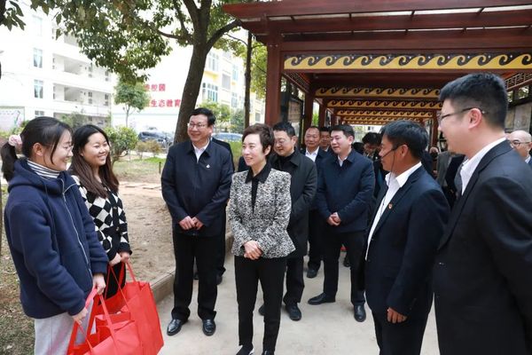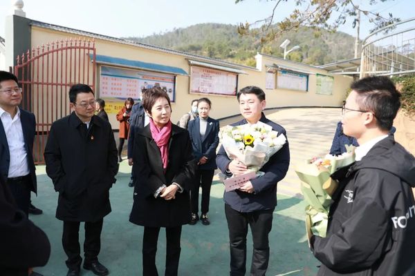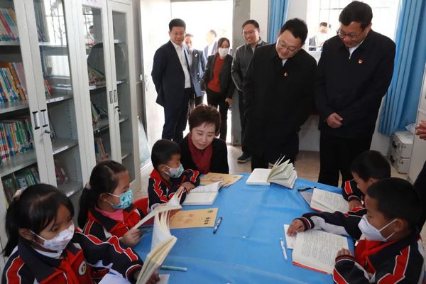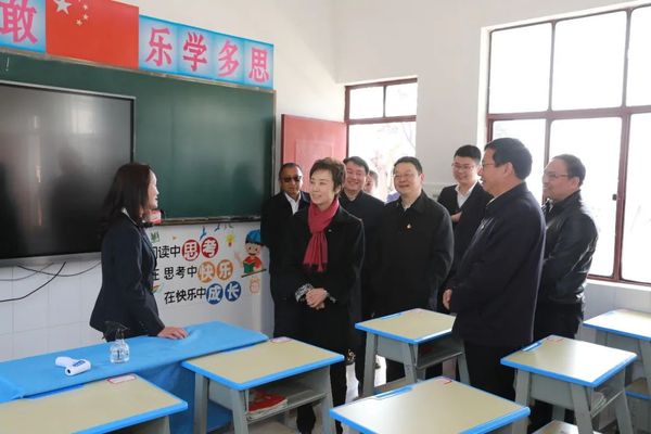 智能电子白板、全新的课桌椅、各类儿童读物、崭新的篮球场……在胜泉完小,焦扬实地了解学校最新发展情况,鼓励挂职干部与结对院系党委一同助力当地教育发展。