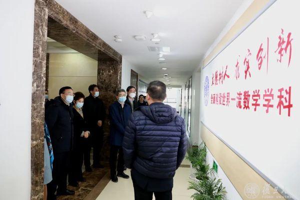中国科学院院士、上海数学中心主任、复旦教授李骏,数学科学学院党委书记王光临等参加调研。