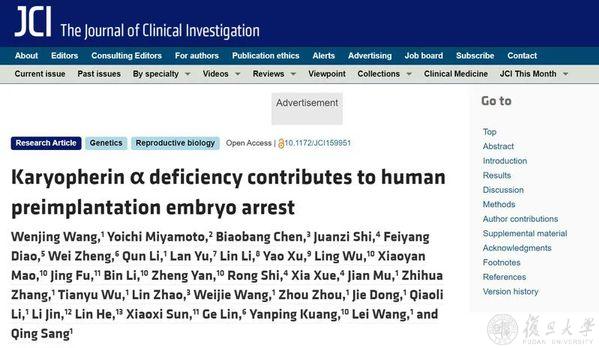 9.生物医学研究院桑庆/王磊团队与合作者发现α核转运蛋白缺陷 导致人类植入前胚胎停滞新机制