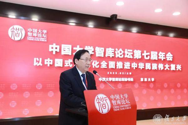 2月24日,聚焦“以中国式现代化全面推进中华民族伟大复兴”主题,中国大学智库论坛第七届年会在复旦大学举行。教育部党组成员、副部长翁铁慧,上海市人大常委会副主任、党组副书记周慧琳,复旦大学党委书记裘新、校长金力出席全体大会并讲话。