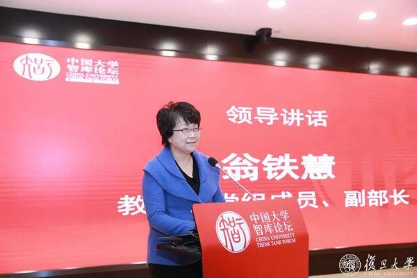 就新发展阶段推动高校智库高质量发展,翁铁慧提出四点意见:一是聚焦主题,高站位服务中国式现代化,扎根中国大地、传承中华文明,深入研究中国式现代化的特殊性和一般性,总结推进中国式现代化有开创性独特性的实践经验,提炼有支撑力和解析力的标识概念和核心框架,构建中国式现代化的学术体系、话语体系和叙事体系。二是围绕育人,高质量培育时代新人,着力增强青年的志气、骨气、底气,培养国际视野、家国情怀,引导以小我融入大我,投身中国式现代化的伟大事业。三是抓实关键,高水平做强人才队伍支撑,组建一批以中青年为主、文理交融的社科创新团队,为参与全球科技和人文竞争做好人才和智力储备,遴选一批跨学科专家学者,组建高校智库专家库,打造政治可靠、素质优良、成果突出的骨干力量,优化高校智库人才和成果评价体系。四是探索创新,高标准健全高校智库的治理体系,坚持问题导向,扎根学科建设,建立高效协同的机制,为以中国式现代化全面推进中华民族伟大复兴、以中国式现代化创造人类文明新形态,提供更为坚实有力的人才支撑、理论支撑、智力支撑。