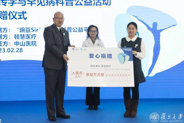 活动当天还举行了“遗传学与罕见病科普公益活动捐赠仪式”。2021年11月,由樊嘉院士、周俭教授领衔中山医院肝外科团队研发的“7种微小核糖核酸肝癌检测试剂盒”成功转化为普适于临床的体外诊断产品并生产上市。顿慧医疗公司携手中山医院肝外科团队探索“医研产”合作新模式,承诺每生产一支试剂盒即向公益组织捐赠1元善款。在当天的活动中,顿慧医疗向聚焦遗传学与罕见病的公益平台“豌豆SIR”捐赠30万元,复旦大学附属中山医院党委副书记李耘代表医院进行了见证。该笔善款将作为专款用于罕见病的科普宣传,帮助更多罕见病患者。