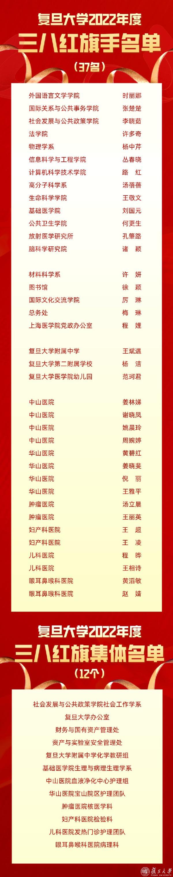 获表彰的复旦三八红旗手、三八红旗集体全名单一睹为快!
