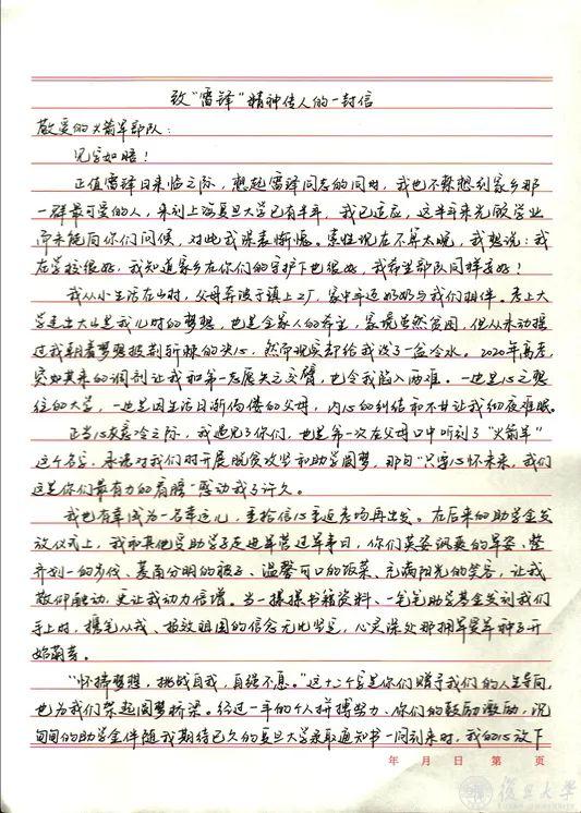 近日,一封题为《致雷锋精神传人》的书信从复旦大学寄到火箭军某部,刷屏了官兵们的朋友圈,大家纷纷转发点赞