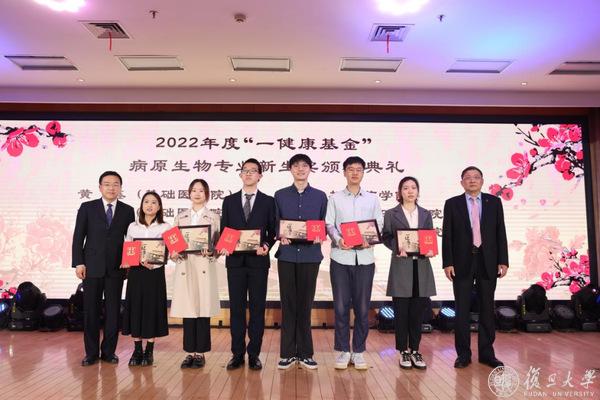 活动现场,闻玉梅院士、陈凯先院士、高福院士、翁心华教授、宁忆教授等嘉宾为获得2022年度“一健康基金”优秀本科生奖、优秀研究生奖、病原生物专业新生奖、优秀论文奖、优秀教师奖的师生颁奖。