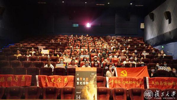 3月14日下午,由复旦大学博士生讲师团与“星火”党员志愿服务队联合推出的《望道》电影系列党课、思政课迎来了第一讲。复旦历史学系百余名同学前往影院,学习电影党课《陈望道与伟大建党精神》,观看即将公映的电影《望道》。