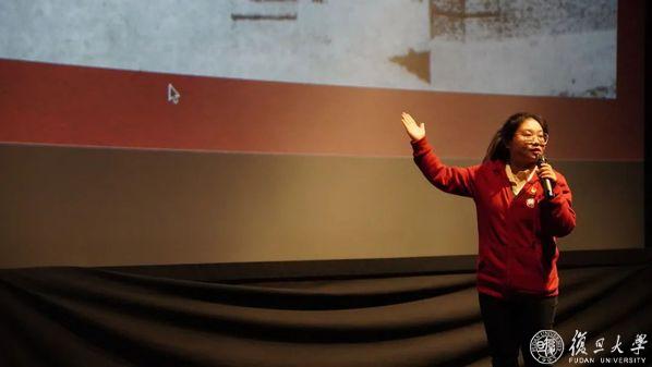 观影前,“星火”党员志愿服务队队员、马克思主义学院博士研究生赵颖为师生带来电影党课《陈望道与伟大建党精神》。1个讲台,20分钟,100人,他们一起回望陈望道传奇的一生。