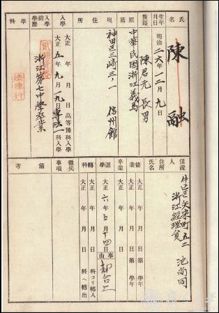 陈望道学籍卡