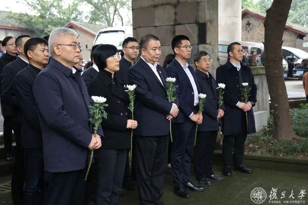清明临近,复旦师生、校友代表为“寒冰墓”举行献花仪式。夏坝中学“寒冰班”学生敬献花篮,金力整理缎带,复旦师生、校友先后献花,共同悼念和缅怀抗战期间牺牲的复旦爱国师生。仪式由许征主持。