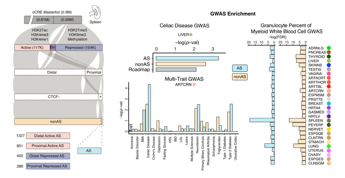 图1 等位基因特异性调控元件的注释及其与GWAS遗传变异位点的富集分析