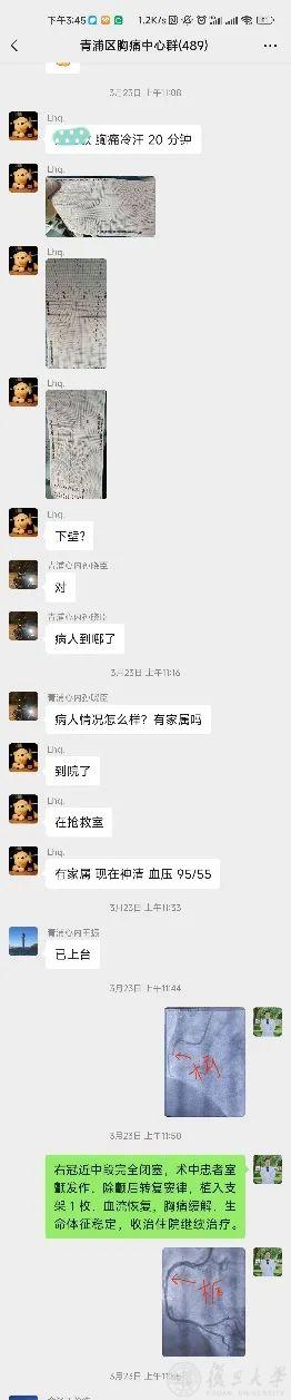 对于高危急性冠脉综合征患者,社区医生可以通过微信群及电话与24小时胸痛值班医生取得联系,实现青浦院前、院内对急性心梗患者急救的无缝对接。