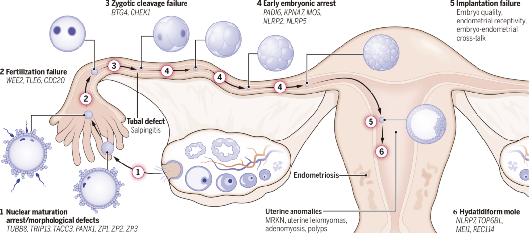 图2 不同类型卵子、受精及胚胎发育异常及致病基因