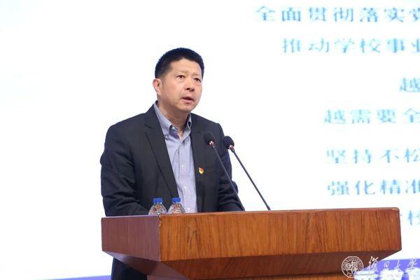 2023年是全面贯彻落实党的二十大精神的开局之年,也是推动学校事业高质量发展的关键之年,要强化精准发力,科学靶向施治,持续推动学校全面从严治党向纵深发展。一要提高站位、净化思想,深刻领会总书记关于全面从严治党的重要论述,进一步提高政治站位、强化政治自觉,切实增强责任感使命感。二要认清形势、正视问题,党风廉政建设和反腐败斗争形势依然严峻复杂,依然存在五大阶段性的特征和问题——违反政治纪律和政治规矩问题,高校领域特点的腐败时有发生,形式主义、官僚主义之风未根除,师德失范行为屡有发生,管党治党的责任落实不够有力等。三要从严治党、毫不含糊,坚持严字当头、全面从严、一严到底,把严的基调、严的措施、严的氛围长期坚持下去,做到政治监督从严、作风建设从严、干部管理从严、“三不”一体从严。全校上下要立刻行动起来,推动学校全面从严治党向纵深发展,以高质量工作成效引领学校事业高质量发展、保障“第一个复旦”建设行稳致远。