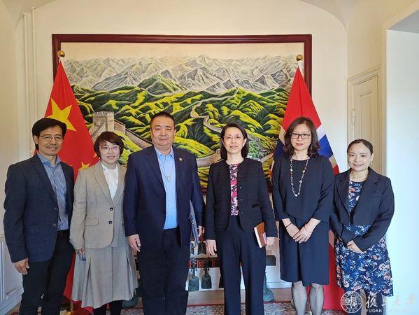 5月7日,金力一行拜访中国驻挪威大使侯悦,双方就加强中挪高校科研合作、打造交流新平台,共同应对气候变化,支持两国绿色发展等内容深入交流。侯悦指出,中挪两国尽管存在差异,但在许多议题上存在共同利益,希望复旦大学与挪威高校在气候变化、绿色转型等方面加强合作。金力表示,复旦大学与挪威高校保持着长期合作伙伴关系,在当前日渐复杂的国际局势下,对话与合作更加重要。复旦大学将继续拓展国际合作,加快推进“第一个复旦”建设。