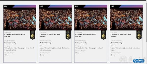 今年VEGA大赛总共包含数字插图、网站、游戏、社交媒体、视频、VR、应用软件等19个门类。今年VEGA数字奖的主题是“引领数字时代”,旨在赞扬那些在数字宇宙中不断探索介质重组新兴可能的未来引领者们,他们将描绘通向未来世界的道路,用作品本身的细节、创新、创意和远见,拓宽数字时代的新体验。其中,由复旦大学文博数字艺术研究中心柴秋霞教授团队创作的展览“雕画汉韵”(CARVING & PAINTING HAN RHYME),荣获了VEGA Digital Awards大赛Video / Online Video (Campaign)视频/在线视频(活动)门类下的文化金奖、互动视频金奖、最佳设计/图形金奖和最佳互动视频金奖共四个GOLD WINNER(全球金奖)。