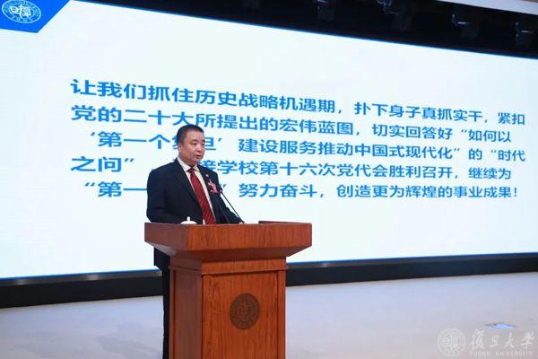 金力作学校年度工作报告,并邀教职工共答“复旦八问”