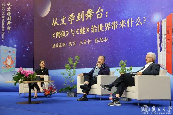 5月17日晚上,复旦大学相辉堂北堂座无虚席,中国作家协会副主席、诺贝尔文学奖得主、茅盾文学奖获得者莫言来到复旦,与中国作家协会副主席、茅盾文学奖获得者、复旦大学中文系教授王安忆,当代著名文学批评家、复旦大学文科资深教授陈思和,共谈文学与舞台。