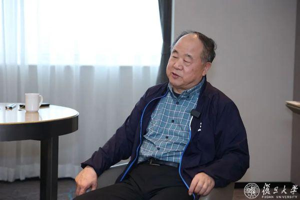 莫言在与王安忆、陈思和三人对谈前,接受了校融媒体中心记者采访。