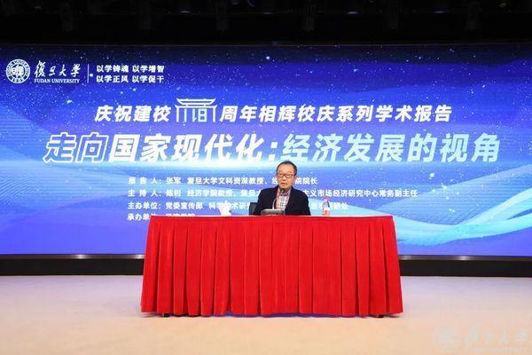 5月17日下午,庆祝建校118周年相辉校庆系列第九场学术报告会在光华楼东辅楼202报告厅举行,复旦大学文科资深教授、经济学院院长张军带来题为“走向国家现代化:经济发展的视角”的学术报告,经济学院教授、复旦大学中国社会主义市场经济研究中心常务副主任陈钊主持报告会。