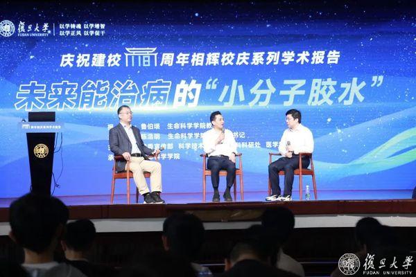5月25日下午,庆祝建校118周年相辉校庆系列第十九场学术报告会在相辉堂南堂举行,复旦大学生命科学学院教授鲁伯埙带来题为“未来能治病的‘小分子胶水’”的报告。复旦大学生命科学学院党委书记陈浩明主持报告会。