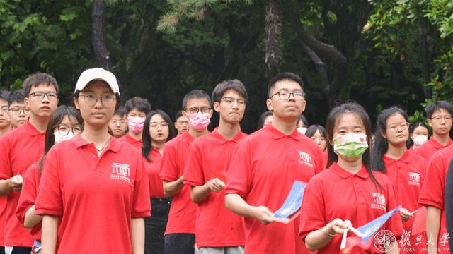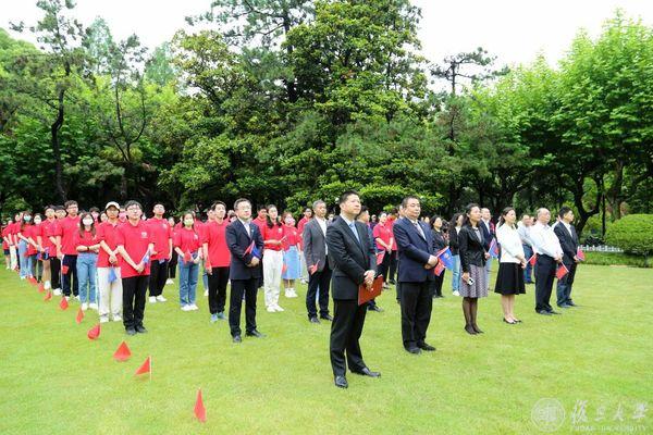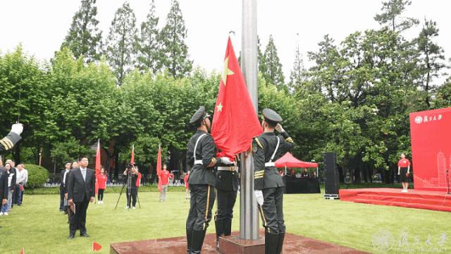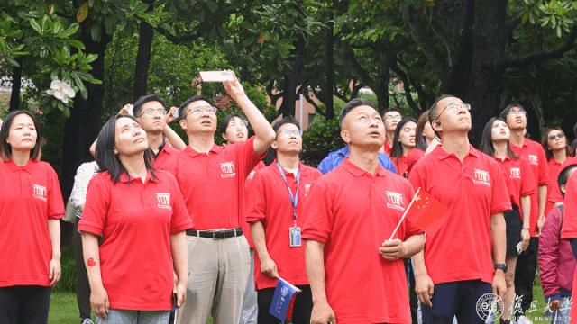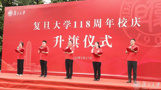 “我❤️复旦”在场不少人身穿校庆衫,他们是各院系师生代表、校友代表,场外不少行人驻足观礼。