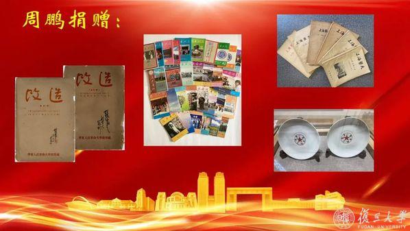 《复旦通讯》杂志为台湾出版的文史资料。涉及1949年赴台复旦教职工、学生相关回忆录及校友在台工作生活情况。上海解放初期,华东地区教育部门借复旦大学邯郸路校区举办了华东革命大学培训班,部分复旦师生参与其中。华东革命大学《改造》报刊辑录时段涵盖了整个办学阶段,为存世孤品。1952年院系调整,原国立上海医学院更名为上海第一医学院。为庆祝更名,医学院委托民国知名瓷器公司建华瓷业公司定制江西景德镇瓷盘一批作为赠礼。本对瓷盘胎质细腻、釉色清新、做工考究,器物及配套附件支架完整,存世稀少。《上海一医》报刊涵盖了1982年复刊号至2000年与复旦大学合并前全部期数,是系统了解改革开放后原上海医科大学医、教、研、管各项工作的重要文史资料。