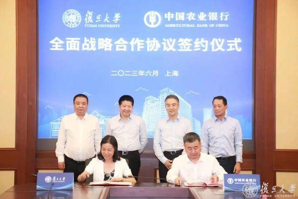 6月9日上午,中国农业银行董事长、党委书记谷澍一行到访复旦大学,双方签署全面战略合作协议。中国农业银行机构业务部总经理王延田,复旦大学常务副校长许征代表双方签约。谷澍,中国农业银行上海分行党委书记、行长陈其昌,复旦大学党委书记裘新,复旦大学党委副书记、校长金力见证签约。