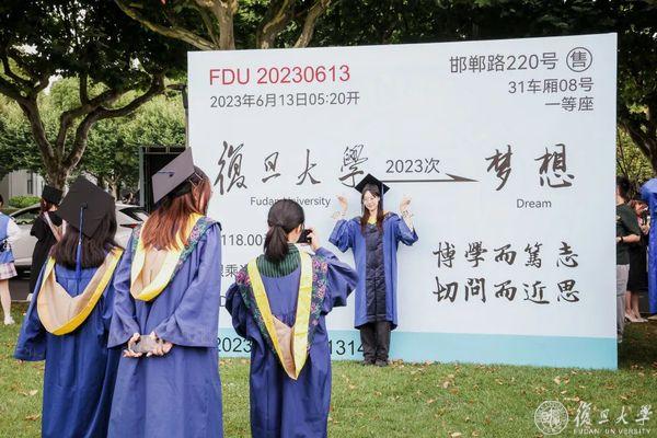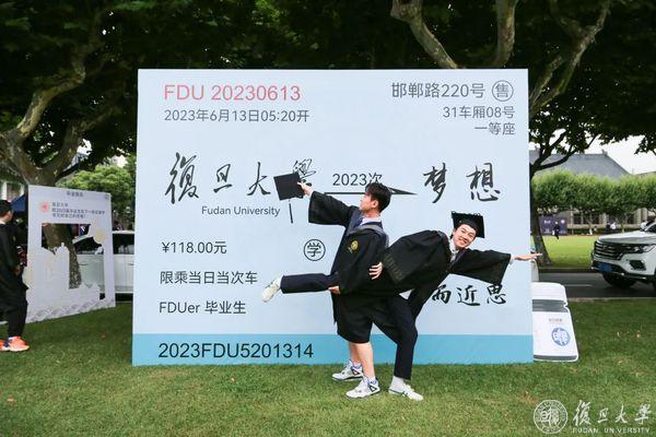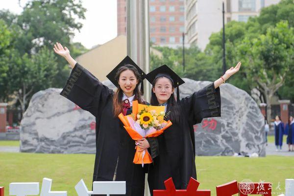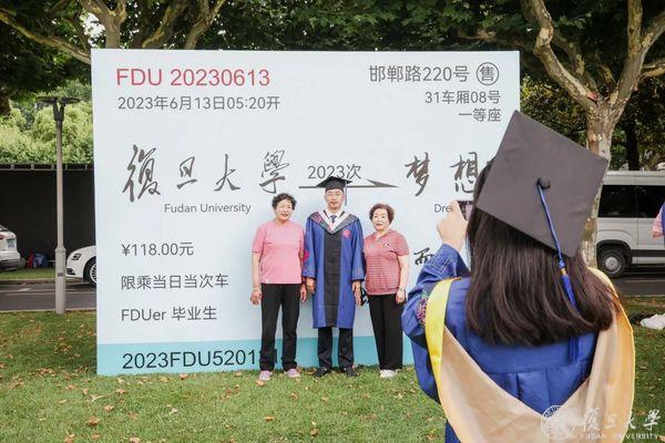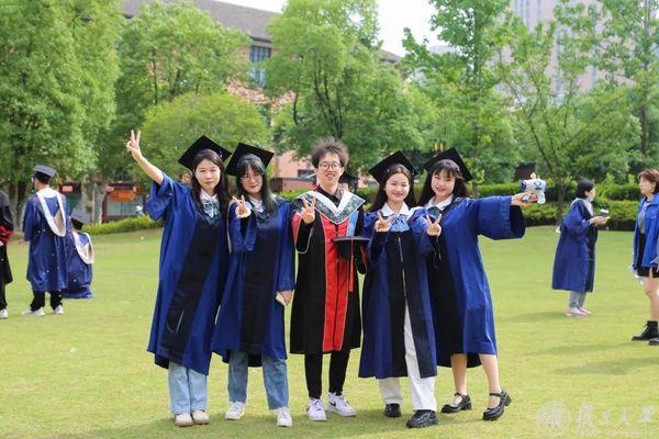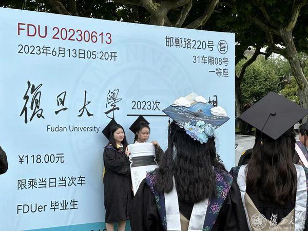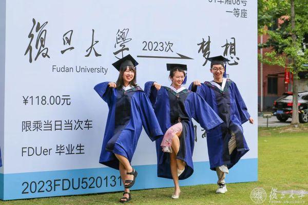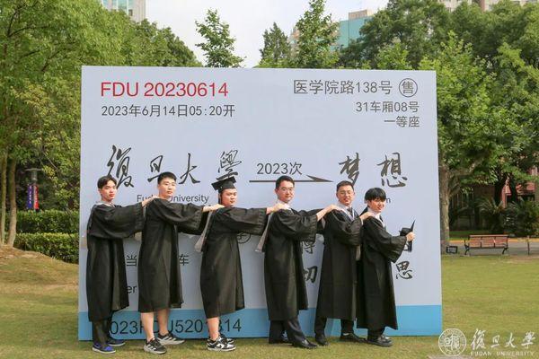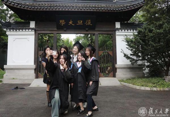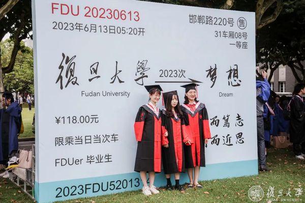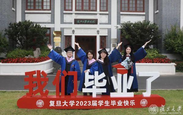 2023,毕业啦!繁花六月毕业时,复旦校园里,到处都是身穿学位服的毕业生。6月13日、14日,复旦大学老校门、吕志和楼草坪、相辉堂草坪、康泉图书馆,42支班集体相聚,与书记校长同框拍毕业照。