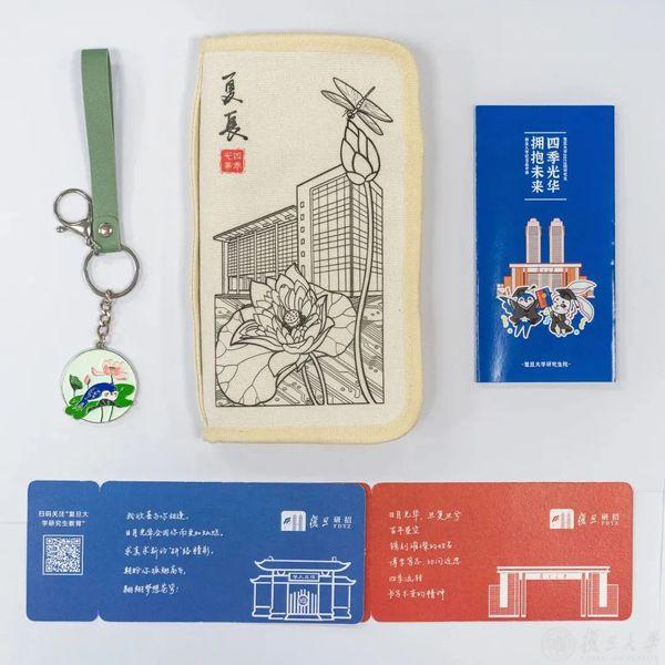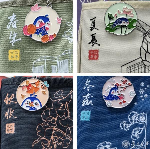 围绕“四季光华,拥抱未来”,复旦研招2023年度主题新生纪念品推出时下流行的盲盒款。排列组合,你将收到春夏秋冬中的一组搭配: