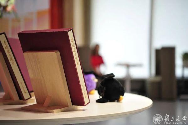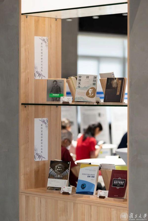 弦歌不辍,薪火相传。会场周边还陈列历届“䇹政学者”出版学术成果,激励今天获得荣誉称号的同学以复旦学者的身份启航,接续奋斗。未来路上,他们取得的学术成果也将汇入这片星海,被永久收藏。