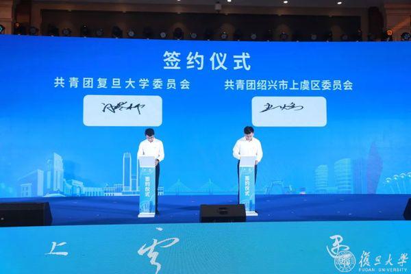全国政协常委、经济委员会副主任、中国国际经济交流中心常务理事长毕井泉,浙江省副省长卢山,全国政协常委、浙江省政协副主席、浙江大学医学院附属邵逸夫医院院长蔡秀军,复旦大学党委书记裘新、复旦大学校长金力,绍兴市委书记温暖,绍兴市委常委、组织部部长王琴英,上虞区委书记鲁霞光见证签约。绍兴市委常委、副市长王涛与复旦大学常务副校长许征签署校地战略合作协议,上虞区委常委、常务副区长金山中与许征、复旦大学校友、校董、浙江复盛技术创新有限公司董事长阮伟祥签署校地企三方合作协议。此外,共青团复旦大学委员会与共青团绍兴市上虞区委员会签署合作协议。