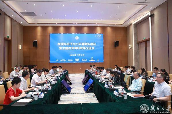 7月3日-6日,复旦大学召开2023年校领导班子暑期务虚会暨主题教育调研成果交流会。会议深入学习贯彻习近平新时代中国特色社会主义思想,围绕教育、科技、人才“三位一体”战略部署,系统小结主题教育开展以来的进展,交流成果、交底资源、交换意见,谋划高质量发展新思路新举措,为迎接学校第十六次党代会做好思想准备。