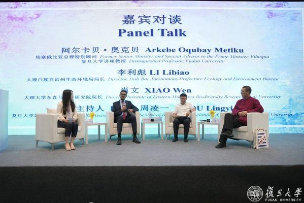 主旨演讲之后,阿尔卡贝·奥克贝、大理白族自治州生态环境局局长李利彪、大理大学东喜马拉雅研究院院长肖文,在复旦大学青年副研究员周凌一的主持下进行了高峰对谈,嘉宾们围绕全球生物多样性保护的国际规范、各方主体在促进生物多样性保护应如何发挥作用、中国促进全球绿色转型和维护全球生物多样性上的角色等议题交流看法。选手们也积极提问,在如何设计更具世界眼光的治理方案与实现手段等方面获得了诸多启发。